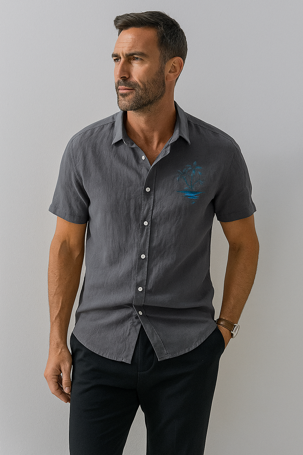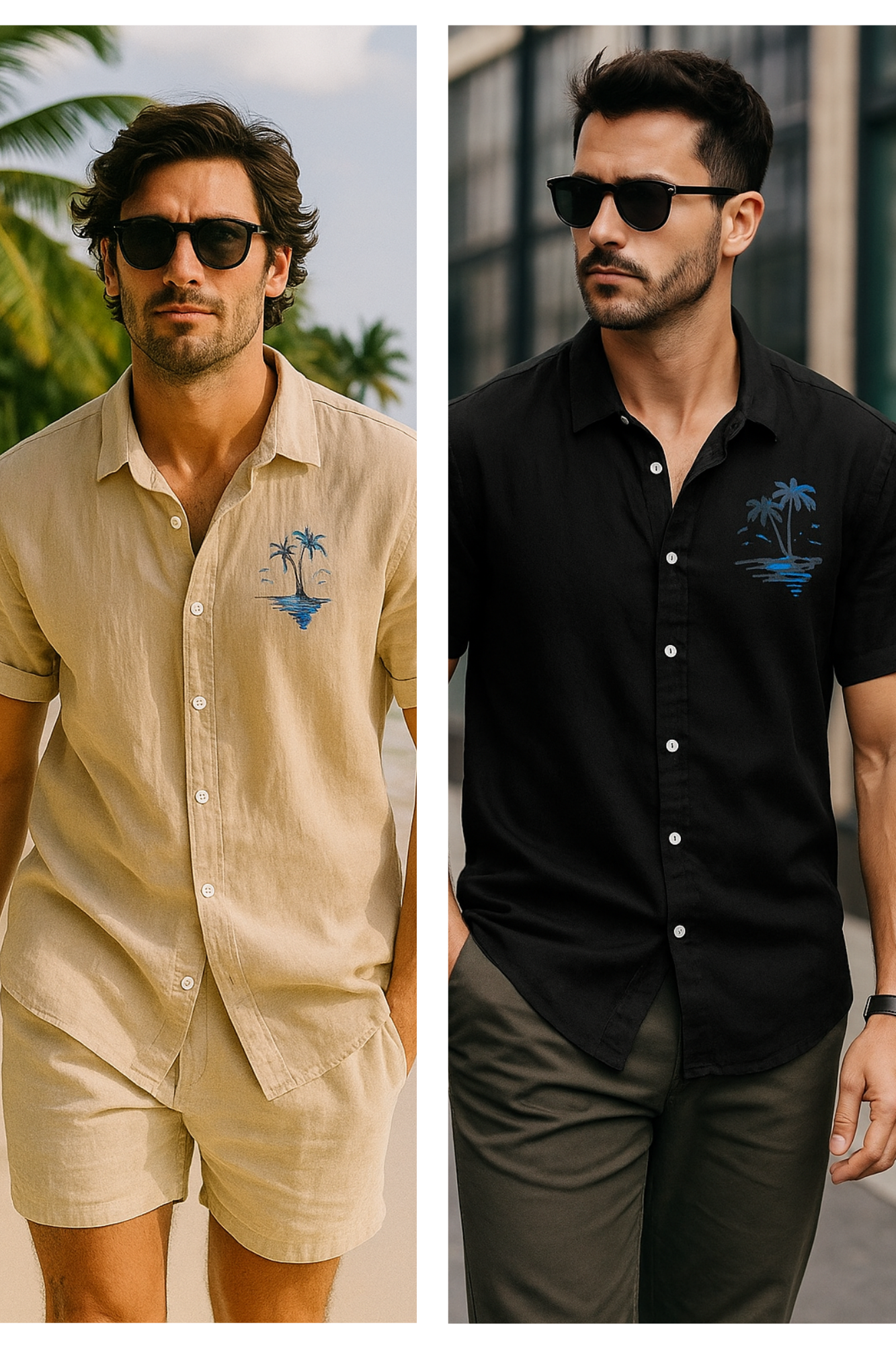 Jetta Chemise d’Été en Lin – Style Plage à Motifs Exotiques