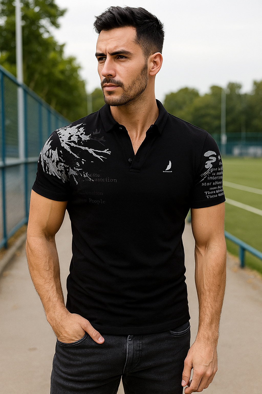 Avec son imprimé discret sur les épaules et ses manches courtes, il allie style classique et modernité dans une seule pièce. Idéal pour ceux qui recherchent la décontraction sans perdre en élégance.