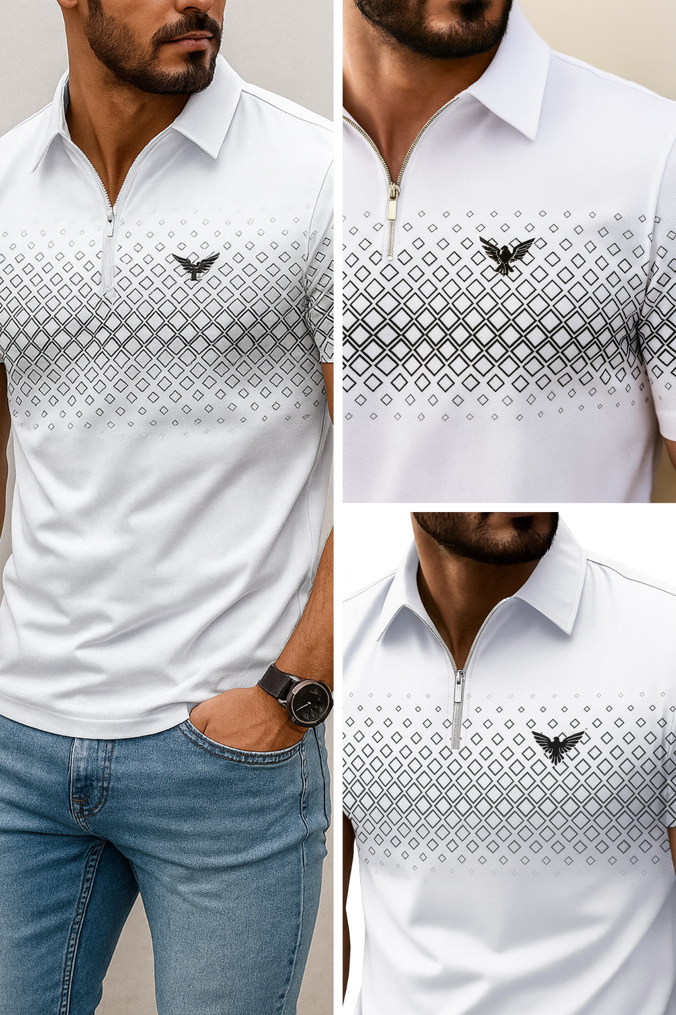 Jetta – Polo Homme à Imprimé Géométrique avec Fermeture Éclair – Élégant et Confortable au Quotidien