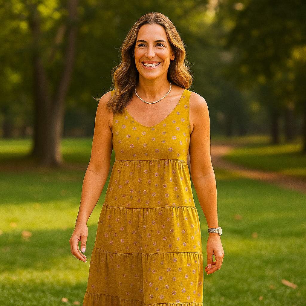 Avec sa coupe longue, sans manches et sa jupe fluide, elle se prête aussi bien aux looks quotidiens qu’aux occasions plus élégantes.