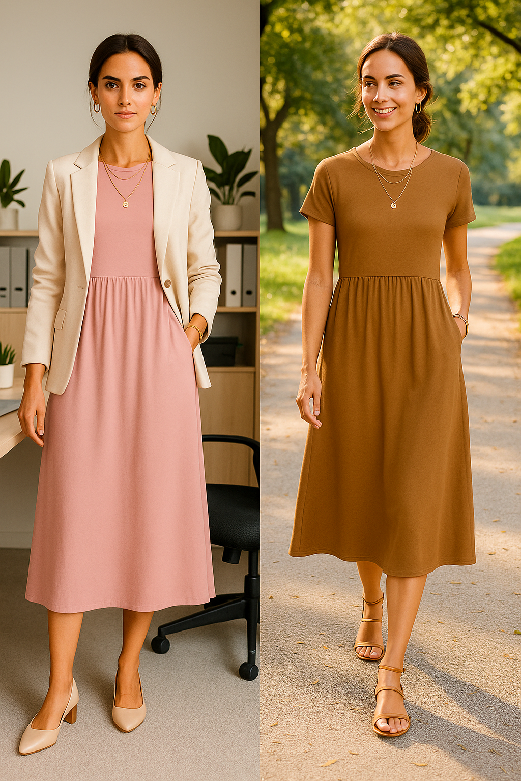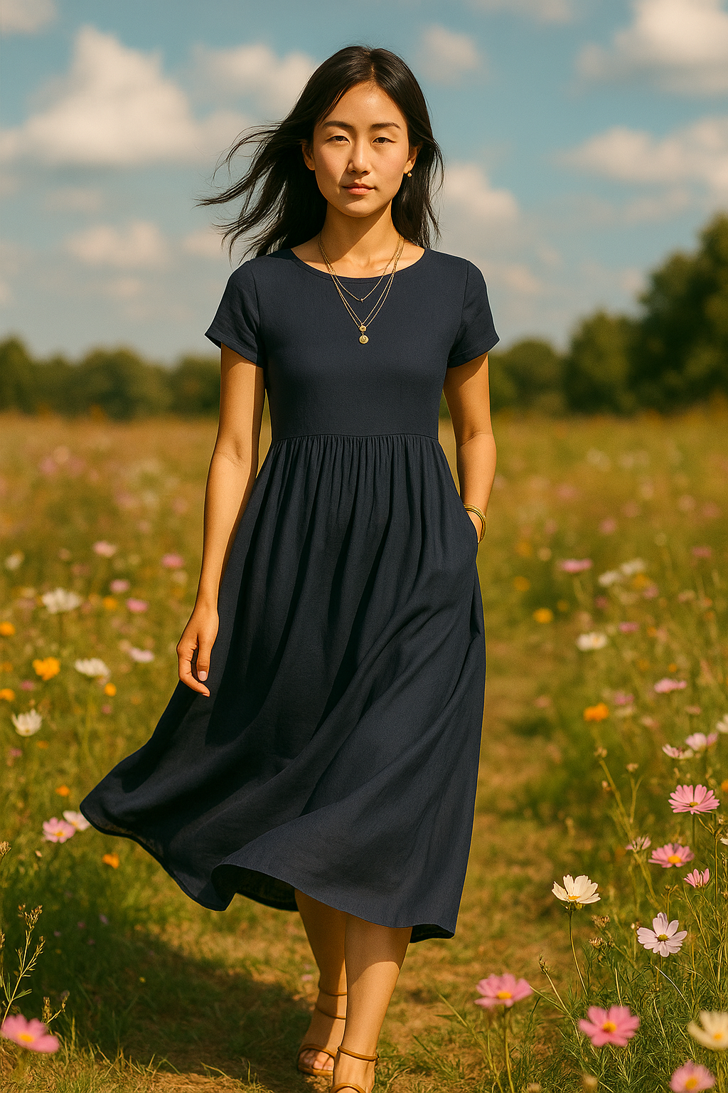 La Robe Alice Midi associe confort et style avec sa coupe fluide, idéale pour celles qui recherchent une élégance pratique au quotidien.