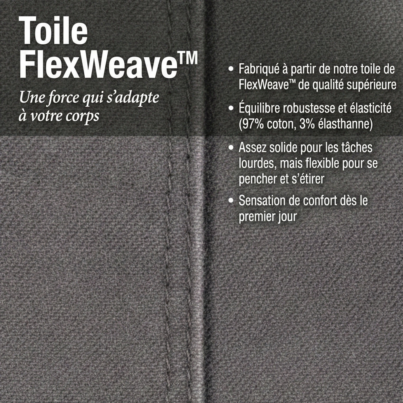 Conçue à partir de notre canevas de coton Duck premium FlexWeave™ (97% coton, 3% élasthanne), cette salopette équilibre robustesse et extensibilité contrôlée. Assez solide pour les tâches lourdes, mais assez flexible pour se pencher et s'étirer, le tissu est confortable dès le premier jour sans s'user prématurément.
