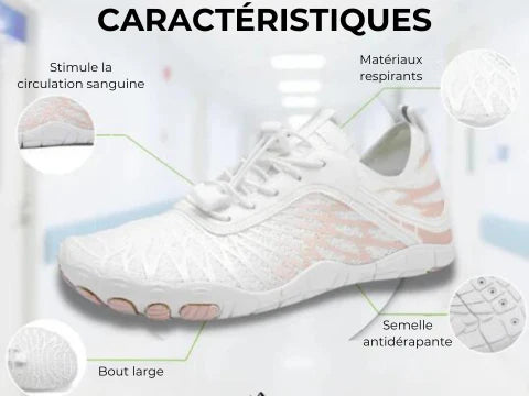 Ces chaussures sont conçues pour imiter la sensation de marcher pieds nus tout en offrant une protection optimale. Elles sont fabriquées avec des matériaux respirants et souples, avec une semelle antidérapante pour assurer sécurité et confort sur toutes les surfaces.